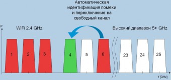 Автоматический переход на другую частоту во избежание интерференции с другими RF -системами ( Wi - Fi , Bluetooth , GSM , DECT )