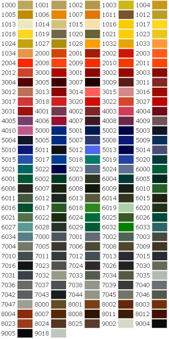 RAL - "Немецкий Институт Гарантий Качества и Сертификации RAL". В 1927 году по причине постоянных просьб немецких производителей красок институт установил стандарт на цветовое пространство, разделив его на диапазоны и обозначив каждый цвет однозначным цифровым индексом, понятным разным областям промышленности. С тех пор цветовые образцы RAL завоевали устойчивую репутацию и уже много лет служат средством общения между производителями краски и планировщиками цвета. По мере появления новых красителей стандарт неоднократно расширялся. На сегодняшний день стандарт включает в себя тысячи цветов и оттенков.
